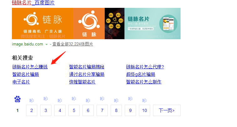 小编今天百度搜索“链脉名片”发现一个有趣的事情,搜索链脉名片第一个相关搜索词就是“链脉名片怎么赚钱”,小编很清楚为什么这个词会是相关搜索第一个词,因为有太多人搜索链脉名片是怎么赚钱的。