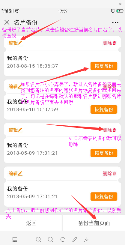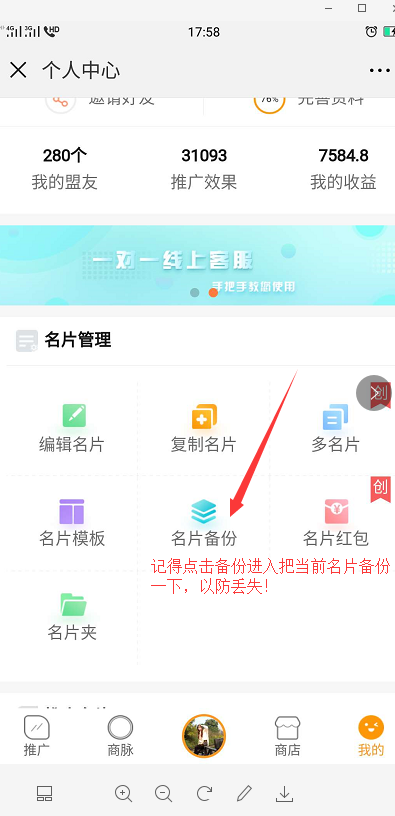 四:下图详解名片备份操作。(看图操作)
